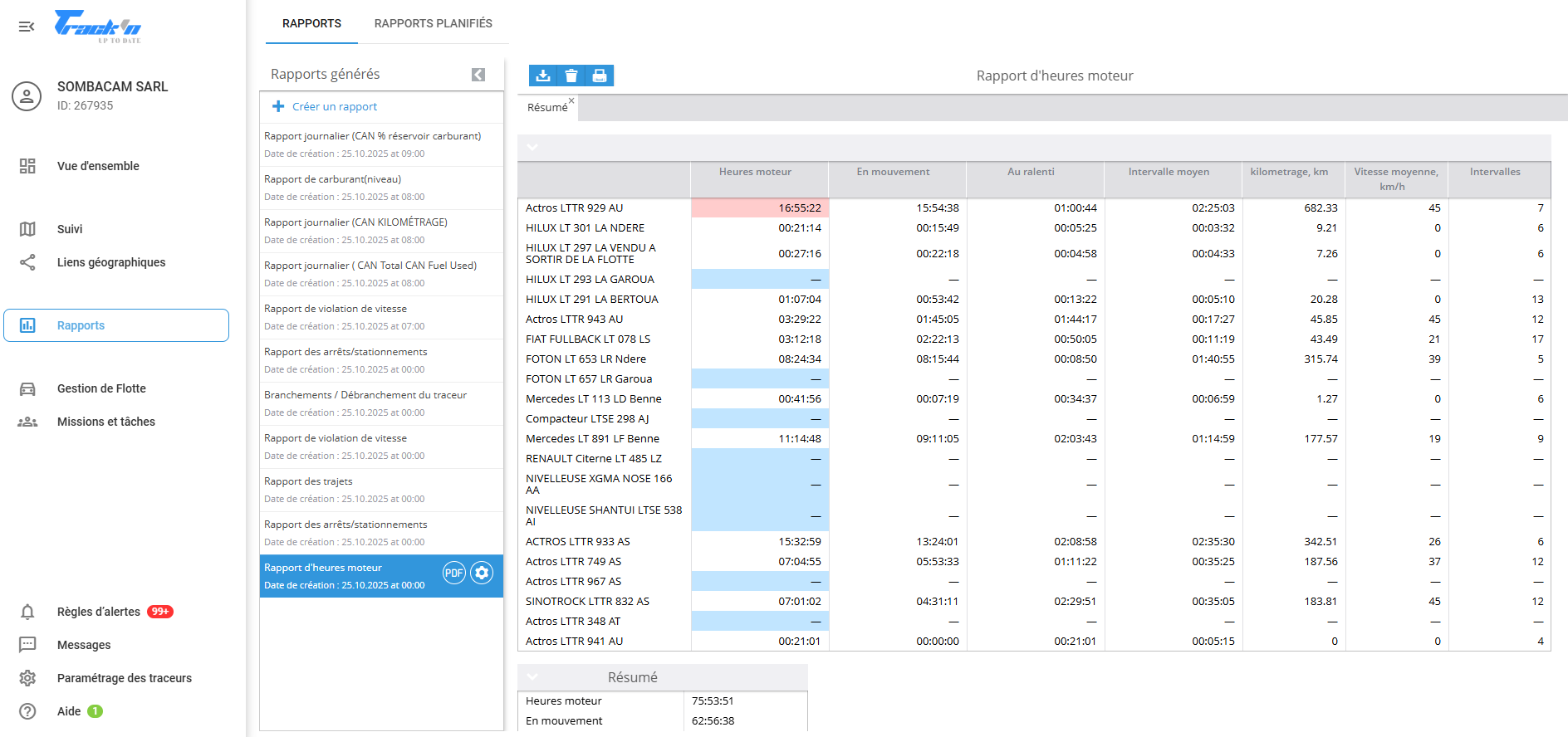 Géolocalisation, consommation de carburant, remontées des heures moteurs,
